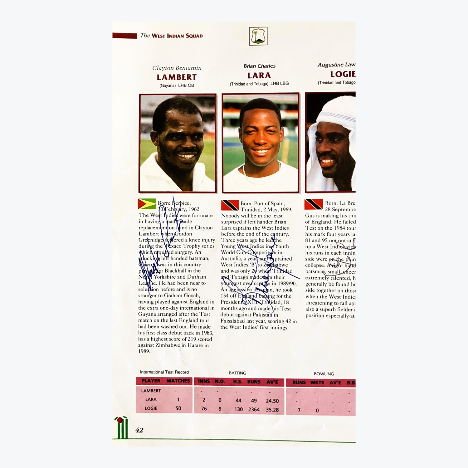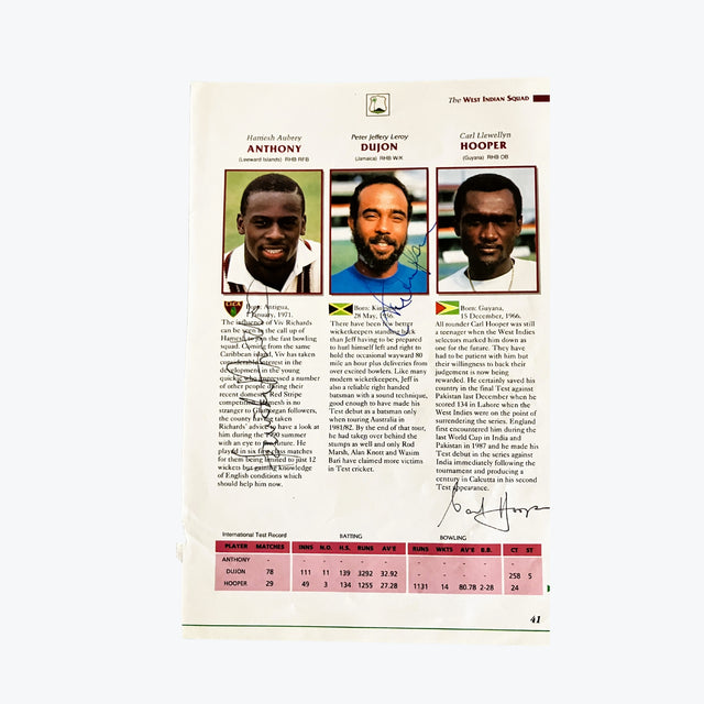 SIGNED: By Hamesh Anthony, Jeffery Dujon, Carl Hooper, Clayton Lambert, Brian Lara, and Gus Logie